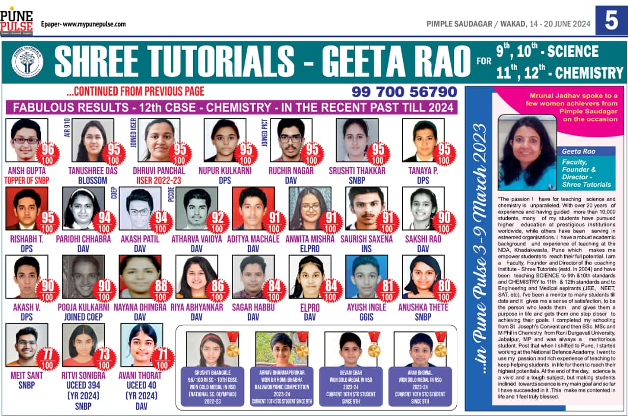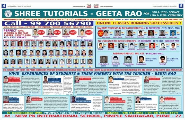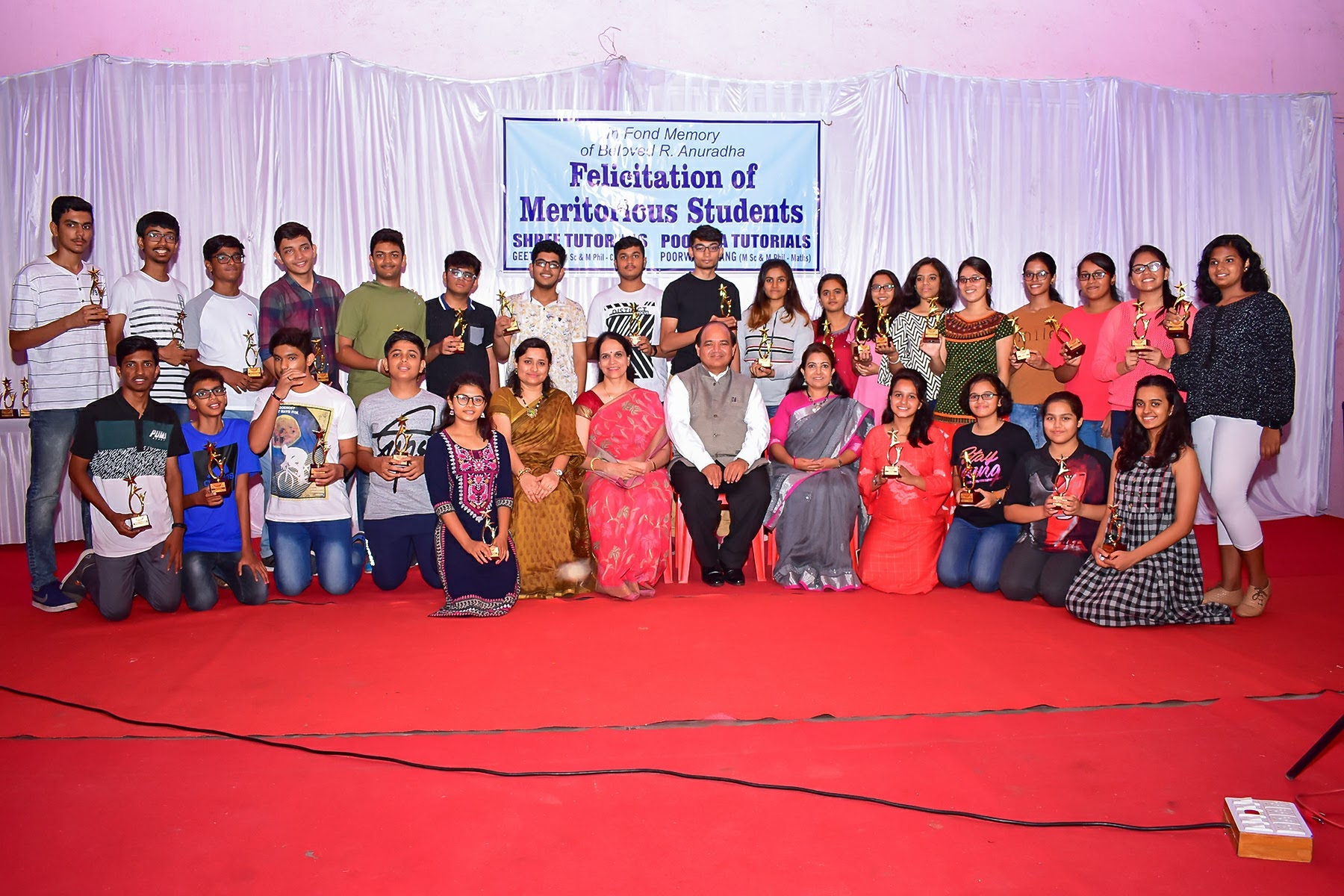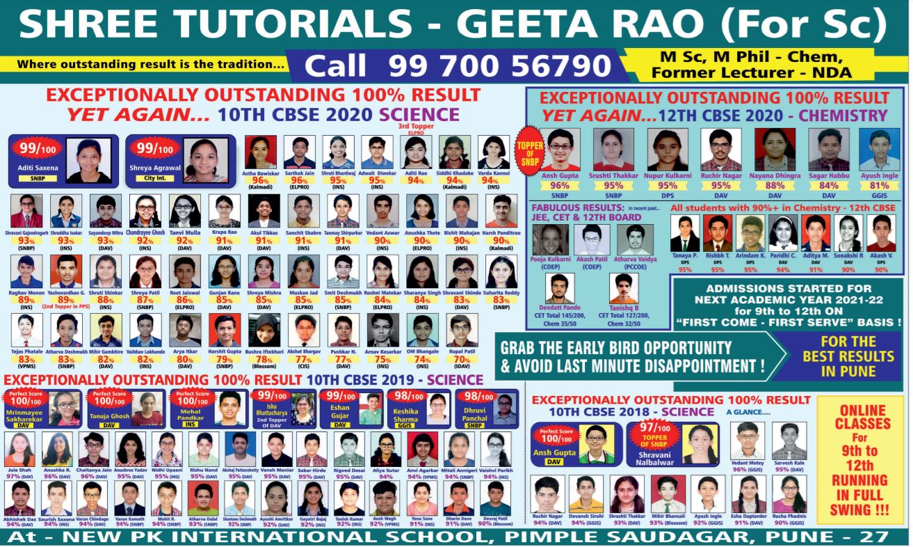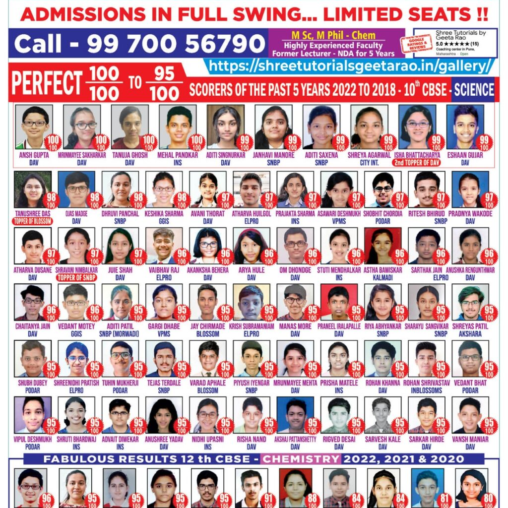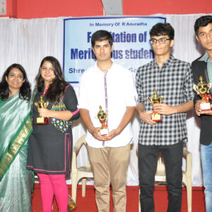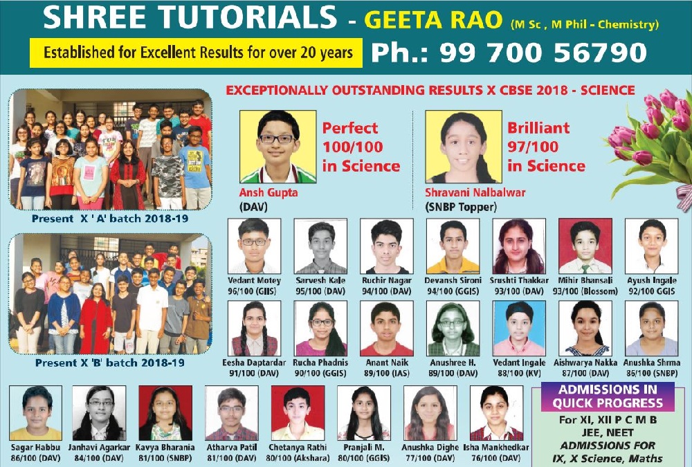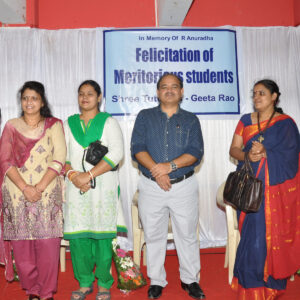 Felicitation of meritorious students of 10 th CBSE SCIENCE and 12 th CBSE CHEMISTRY ( 2018 ) with the Chief Guest Dr PJ Lavakare – an Eminent Scientist and the Teachers Geeta Rao ( for Science) & Poorwa Tailang (for Maths)