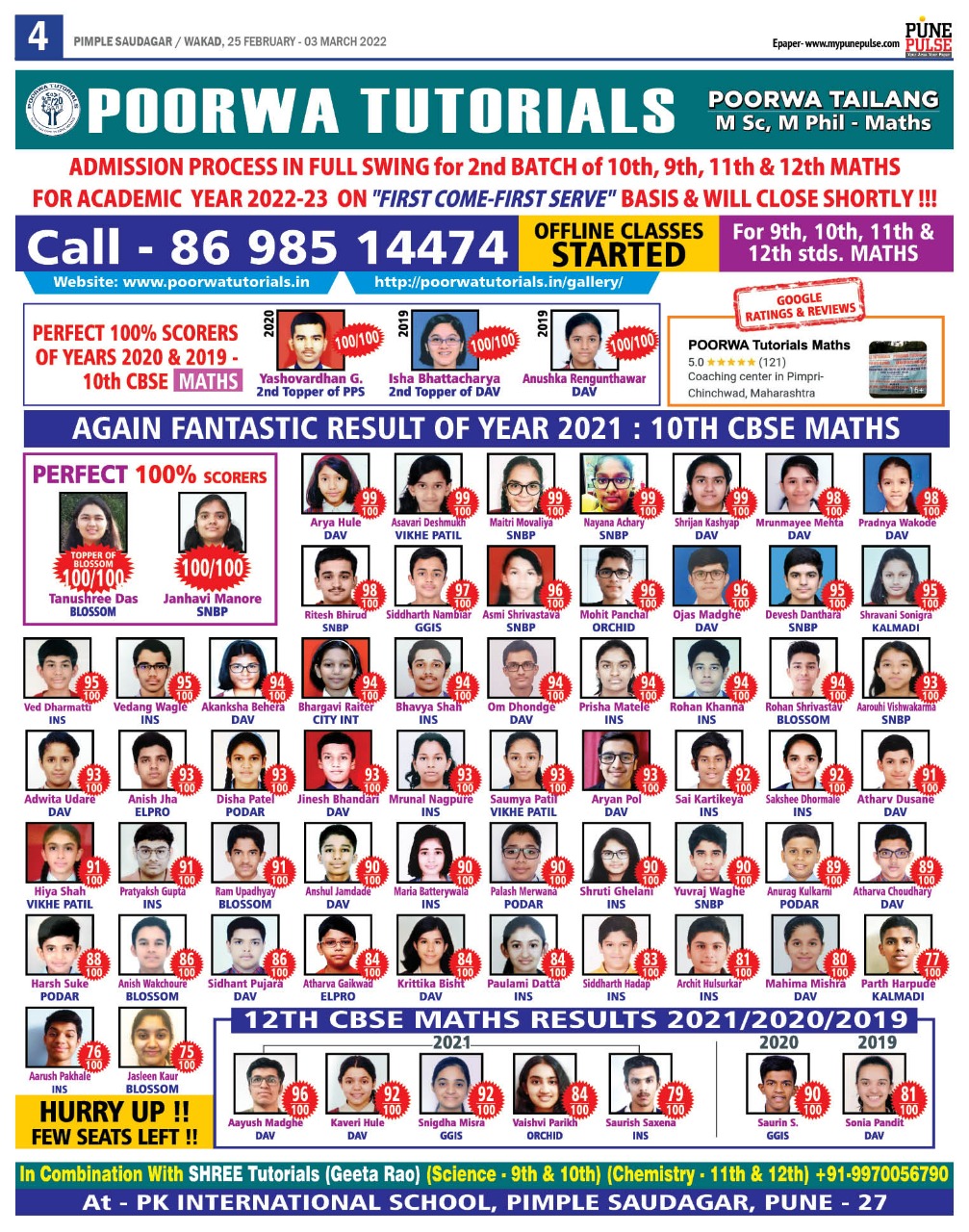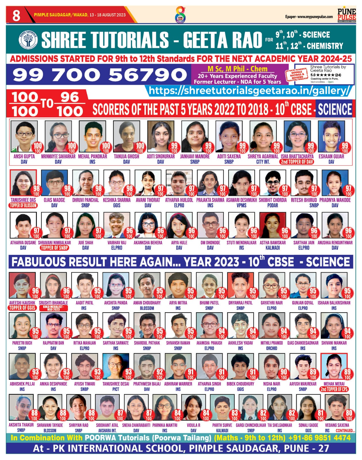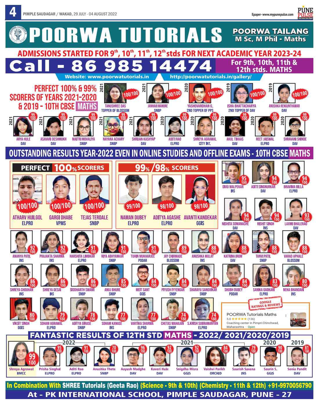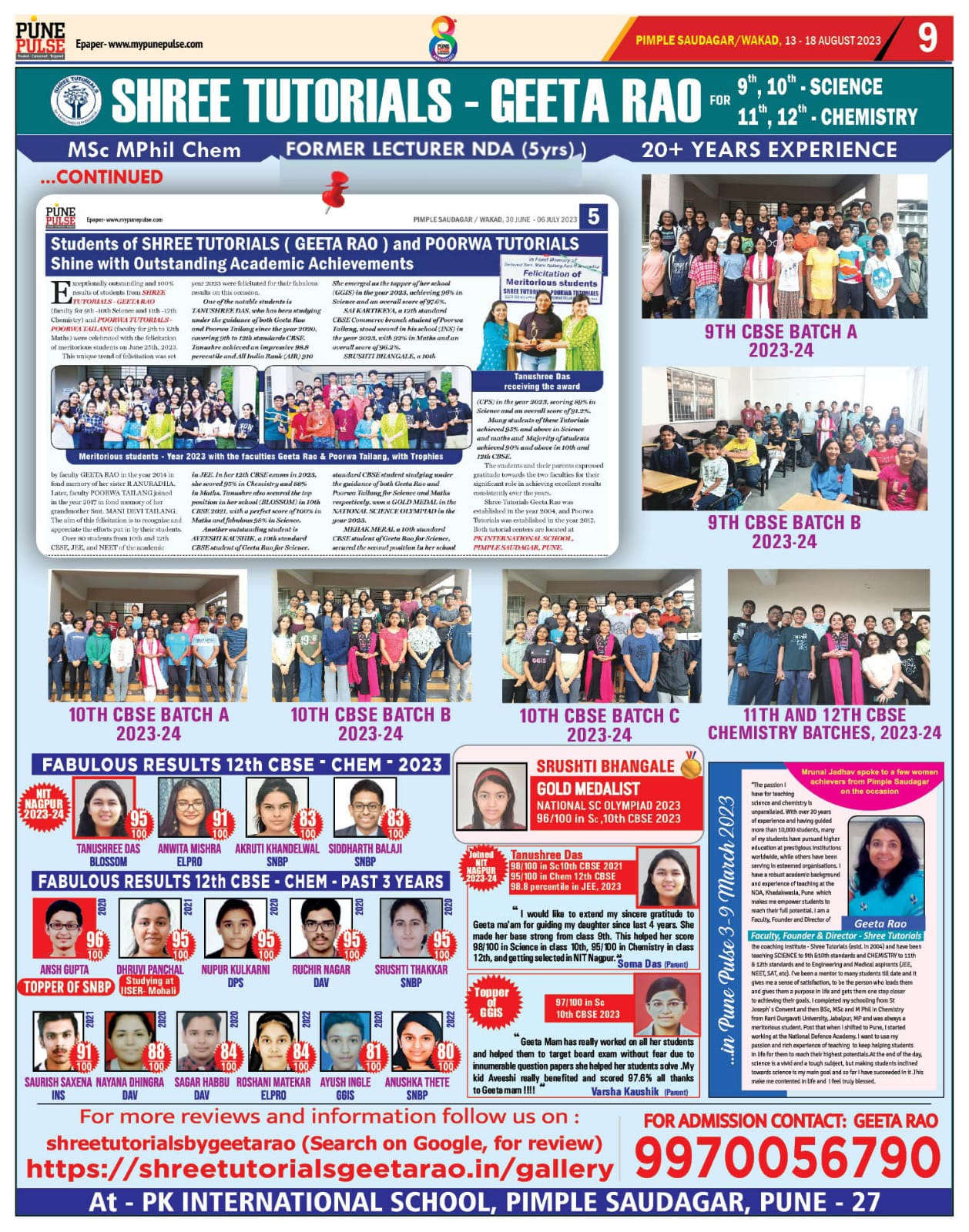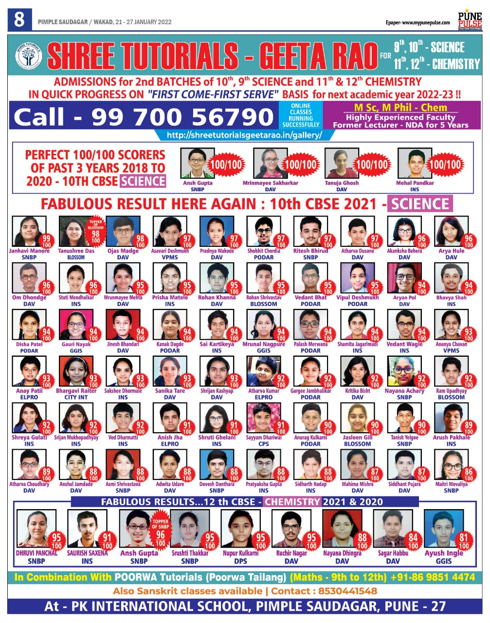 Felicitation of meritorious students of 10 th CBSE SCIENCE and 12 th CBSE CHEMISTRY ( 2018 ) with the Chief Guest Dr PJ Lavakare – an Eminent Scientist and the Teachers Geeta Rao ( for Science) & Poorwa Tailang (for Maths)