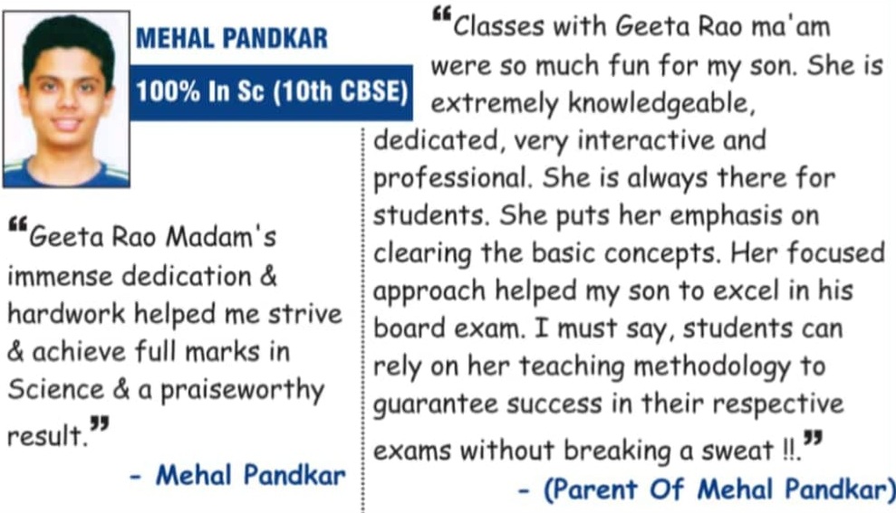 Students with 100/100 in Science and maths -Tanuja Ghosh, Isha Bhattacharya , —Mehal Pandkar , Mrinmayee Sakharekar & Anushka Renguntawar with the teachers – Geeta Rao & Poorwa Tailang and the chief guest Dr Beig